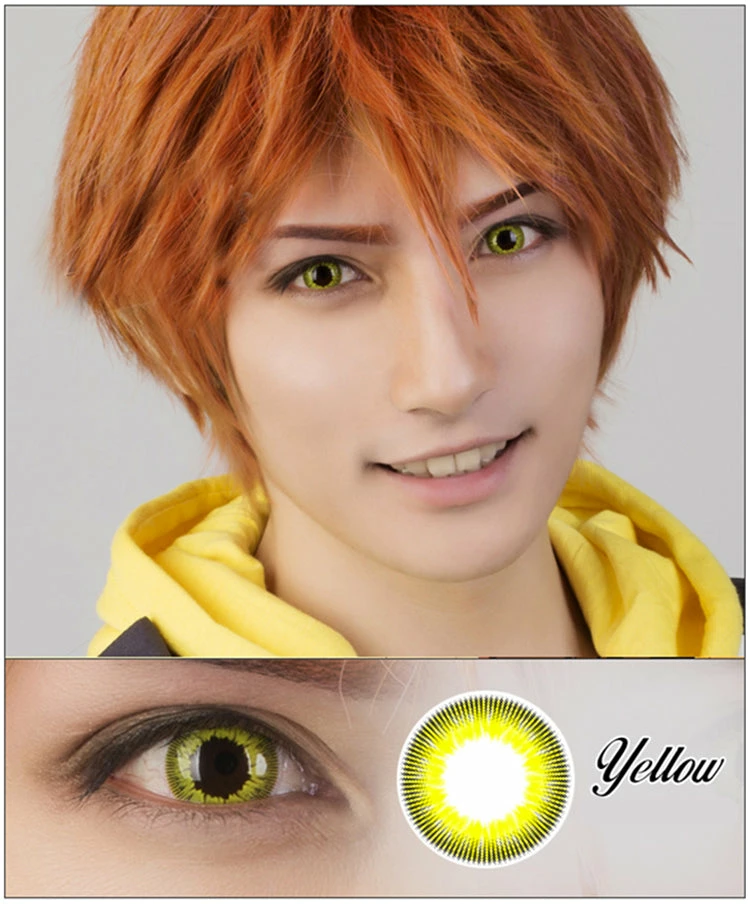 Sweety Free yellow contacts boast a diameter of 14.5mm diameter. With a sheer glow, these lenses help create illuminating eyes. The fuzzy limbal ring keeps the entire effect subdued despite the strong color concentration of the contacts. Capable of adding a pop to your eyes, Sweety Free yellow contacts turn out spectacular in photoshoot. Brilliantly loud, these yellow contacts stay true against every eye color be it light or dark. Sweety Yellow lenses are ideal for Halloween transformation – either be a vampire or bring your ferocious self out using these enigmatic yellow contacts. Creating a powerful anime eye impact is yet another possibility with these yellow contacts.