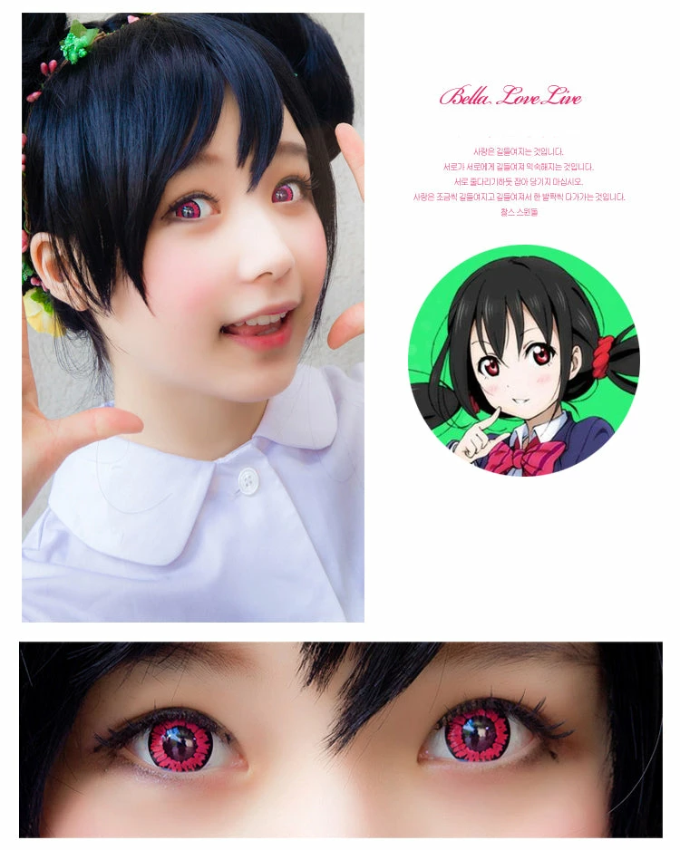 Sweety Lovelive Roseo feature hot pink color with mind blowing opacity. Enable to bewitch you with its outstanding pattern & glow, these contacts make absolute gorgeous memories. The flashy design adds more to its jazzy design where the vividness takes these lenses to a whole new level of punk and funk. Sweety Lovelive Roseo contacts create an illusion of sparkling big eyes that are a major requirement of anime cosplays.